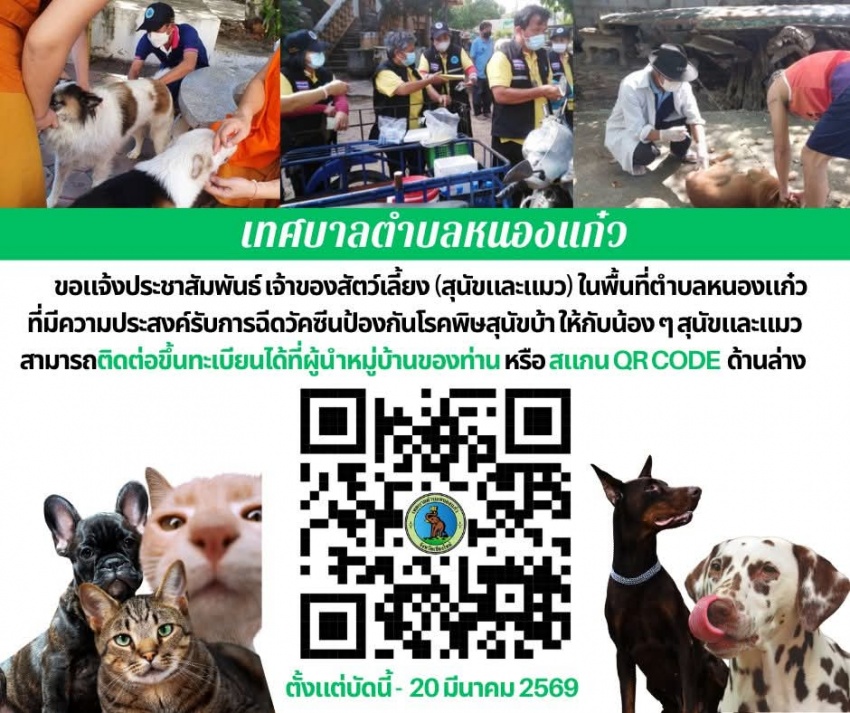 ประชาสัมพันธ์ เจ้าของสัตว์เลี้ยง (สุนัขและแมว) ในพื้นที่ตำบลหนองแก๋ว ที่มีความประสงค์รับการฉีดวัคซีนป้องกันโรคพิษสุนัขบ้า