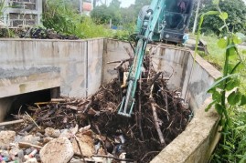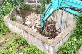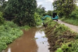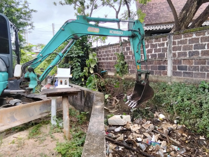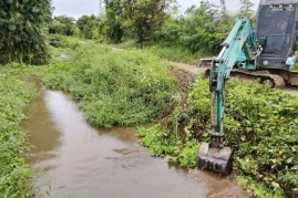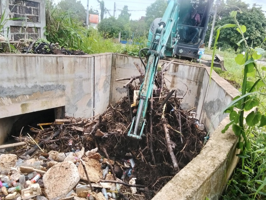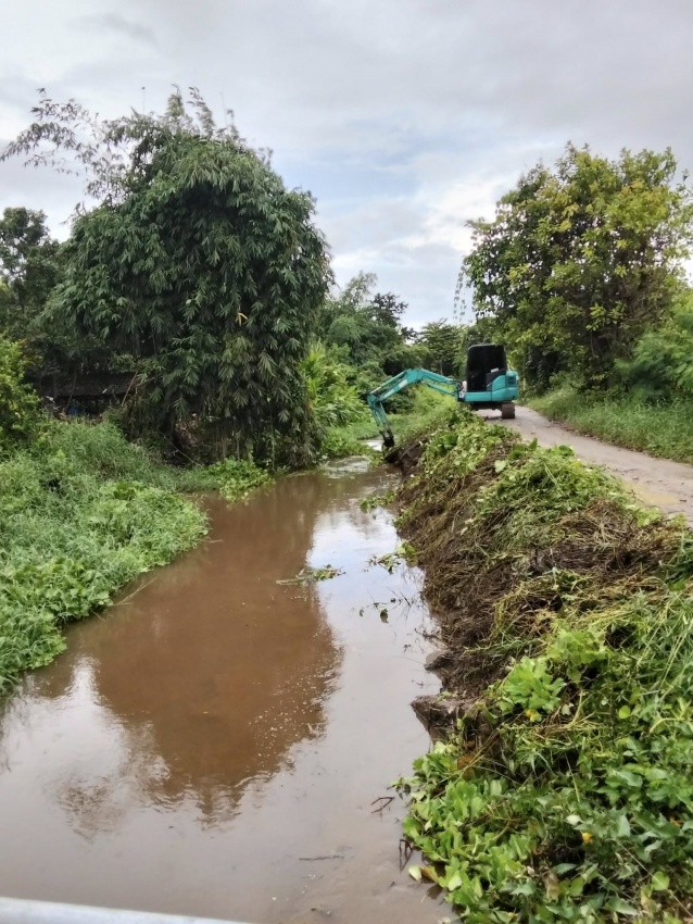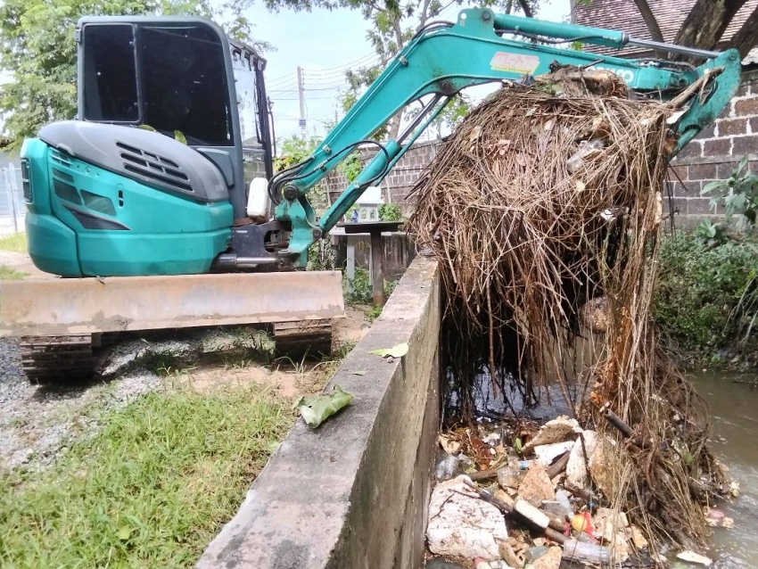 การขุดลอกกำจัดสิ่งกีดขวางทางน้ำ (เศษวัชพืช กิ่งไม้ ขยะมูลฝอย)