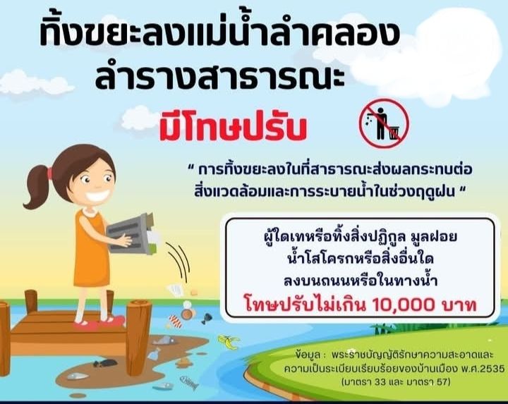 เพื่อประโยชน์ของประชาชนโดยส่วนรวม และเพื่อป้องกันปัญหาความเดือดร้อนดังกล่าว จึงขอความร่วมมือให้ประชาชนทุกคน งดการทิ้งขยะลงในแม่น้ำ ลำคลอง ลำรางสาธารณะ หรือทางระบายน้ำทุกประเภท