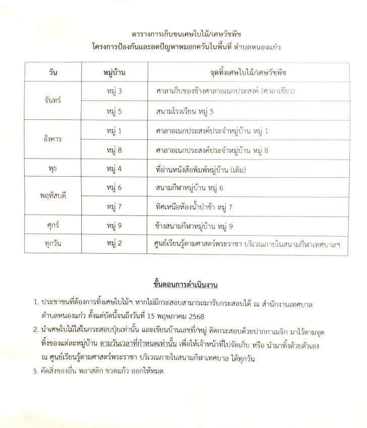 เทศบาลตำบลหนองแก๋วขอเชิญชวนชาวบ้านทุกคนร่วมดูแลสิ่งแวดล้อมและลดปัญหาหมอกควัน โดยงดการเผาเศษวัสดุทางการเกษตร วัชพืช และใบไม้ใบหญ้า ให้ช่วยกันนำไปทำปุ๋ยหมักแทนการเผา สามารถใส่ในกระสอบหรือภาชนะอื่น ๆ แล้วนำไปทิ้งตามจุดจัดเก็บของแต่ละหมู่บ้าน หรือจะนำมาทิ้งด้วยตนเองได้ที่ศูนย์เรียนรู้ตามศาสตร์พระราชา บริเวณสนามกีฬาเทศบาลตำบลหนองแก๋ว ได้ทุกวัน ตั้งแต่วันนี้ถึงวันที่ 15 พฤษภาคม 2568 สอบถามรายละเอียดเพิ่มเติมได้ที่โทร. 053-443062 ต่อ 16