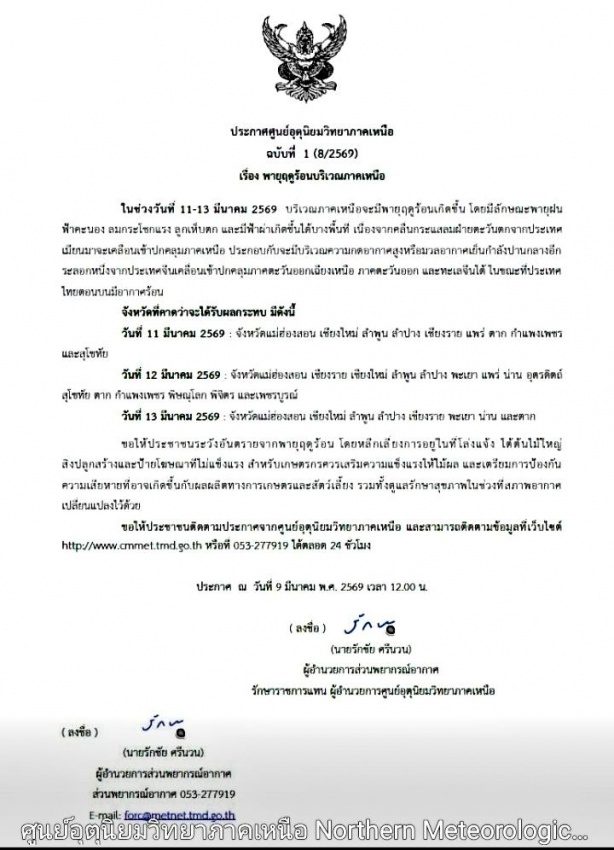 ประกาศศูนย์อุตุนิยมวิทยาภาคเหนือ เรื่อง พายุฤดูร้อนบริเวณภาคเหนือ