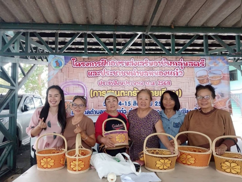 โดย นายเจริญ โนภีระ นายกเทศมนตรีตำบลหนองแก๋ว ได้มอบหมายให้ นางทัศพร ขอดแก้ว ปลัดเทศบาลตำบลหนองแก๋ว เป็นประธานในพิธีเปิดโครงการฝึกอบรมและส่งเสริมอาชีพกลุ่มสตรีและประชาชนตำบลหนองแก๋ว ประจำปีงบประมาณ พ.ศ.2568 (การสานตะกร้าหวายเทียม) วัตถุประสงค์เพื่อส่งเสริมการพัฒนาศักยภาพตนเองของกลุ่มผู้สูงอายุ สตรี ผู้พิการ ผู้ด้อยโอกาส ประชาชนในตำบล ในด้านอาชีพ และภูมิปัญญาท้องถิ่นให้แก่ประชาชนในตำบลหนองแก๋ว