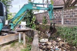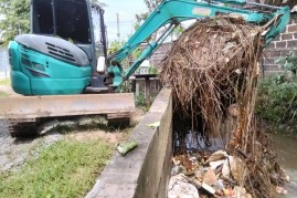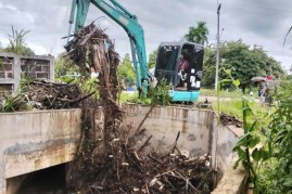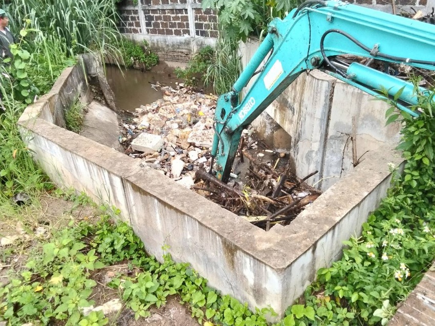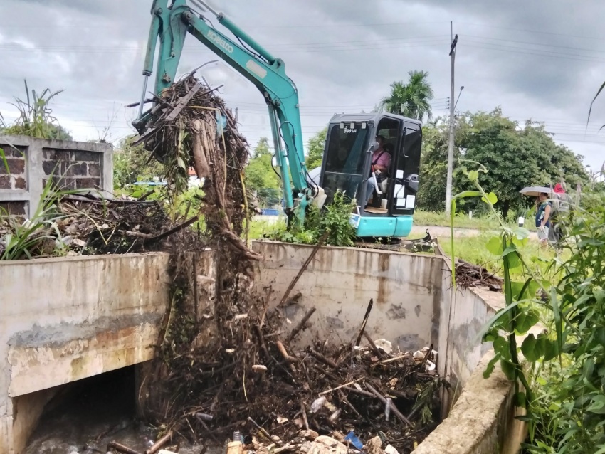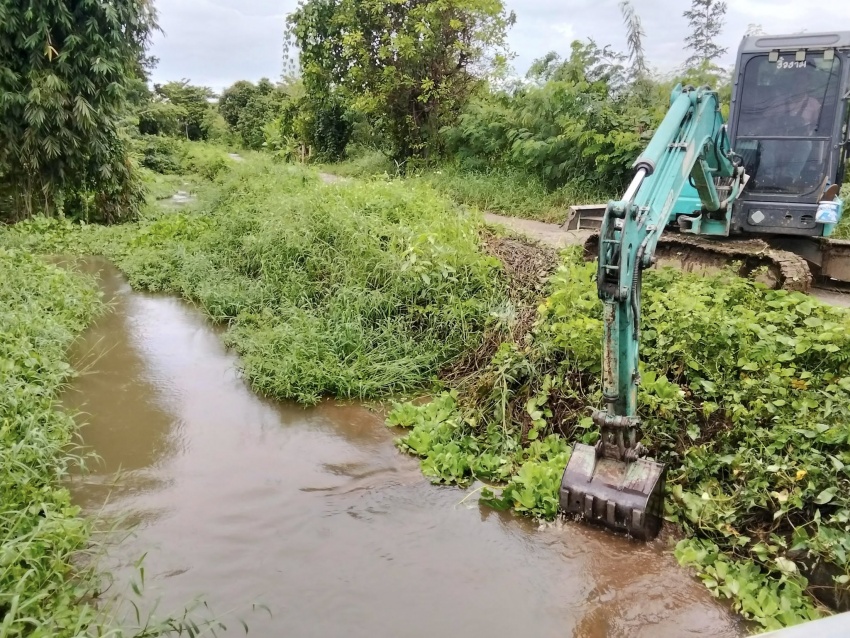 การขุดลอกกำจัดสิ่งกีดขวางทางน้ำ (เศษวัชพืช กิ่งไม้ ขยะมูลฝอย)