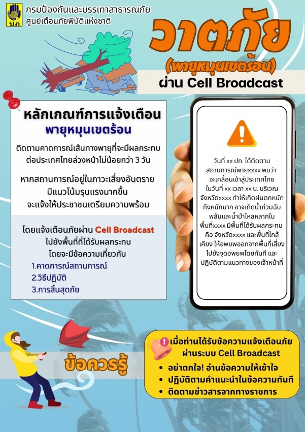 เมื่อท่านได้รับข้อความแจ้งเตือนภัยผ่านระบบ Cell Broadcast ให้ปฏิบัติดังนี้